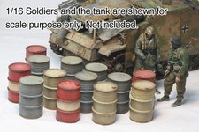 1/16 WW2 German Three 200L Fuel Drums. Built and Painted Grey, Yellow and Red.