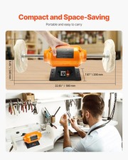 1/2HP Bench Buffer Polisher,8-inch Bench Polishing Buffing Machine,1725RPM/3450R