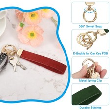 1 Pcs Leather Wristlet Keychain with Key Ring and D Ring Gold/Dark Green