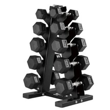 10, 15, 25, 30 & 35 Lb Hexagonal Dumbbell Weight Set w/ Rack, Black