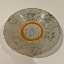 10.5” Chinese Swatow Ware Style Crackle Celadon Bowl Hand Painted