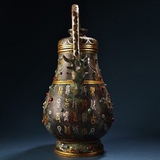 Be the first to review “10.6″Old Dynasty Bronze Ware Gilt Silver Gems Deer Head Portable Bottle Pot Vase” Cancel reply