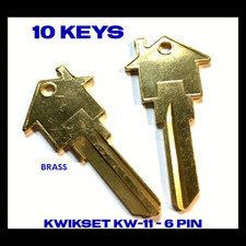 10 KWIKSET KW-11 House Shaped Key Blank 6 Pin Brass REAL ESTATE-MORTGAGE PROMO!