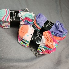 10 pair Girls No Show Socks Random Colors Designs Poly/Spandex NIP shoe sz: 7-3