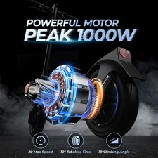 1000W Electric Scooter For Adults 25MPH 45 Mile Range 10″ Tubeless Tires Scooter
