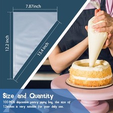 100pcs Thick Disposable Icing Piping Bags, Professional Pastry 12 Inch, Clear