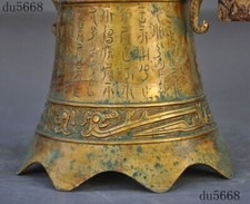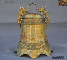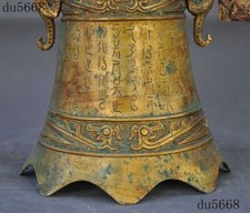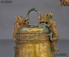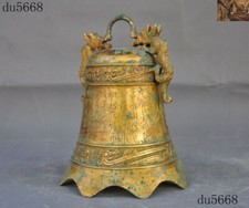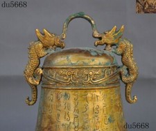 10″Antique Chinese Bronze Ware Gilt Dragon ancient Text Bell Chung chimes clock