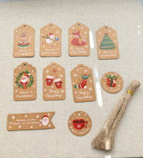 10pcs (1 pc each design) Merry Christmas Gift Tags Kraft Paper Card Gift Tag
