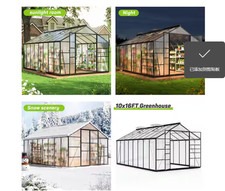 10×18 FT Polycarbonate Greenhouse, Quick Setup, Roof Vent, Walk-in Aluminum