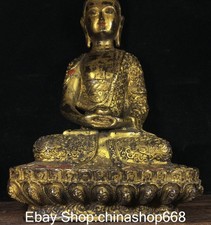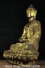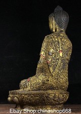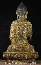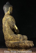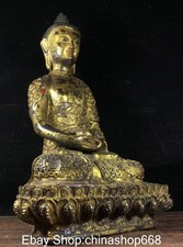 11.8″ Old Tibetan Bronze Gilt Carving Buddhism Sakyamuni Buddha Jar Statue