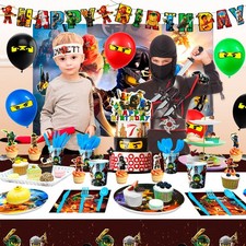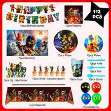 112 Pcs Ninjago Party Decorations Logo Ninja Birthday Tableware Balloons Plates