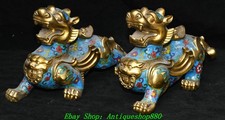 11”Old Cloisonne Enamel Bronze PiXiu Phylactery Guardian Beast Statue Pair