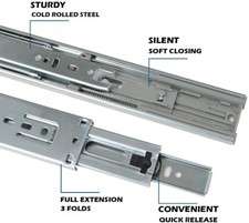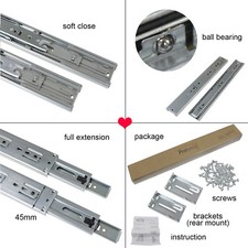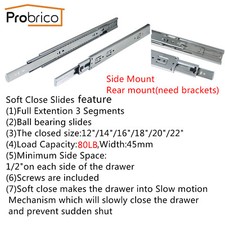 12-22In Soft Close Full Extension Drawer Slides Rear Mount Ball Bearing+Brackets