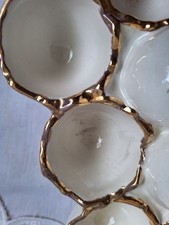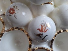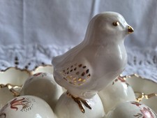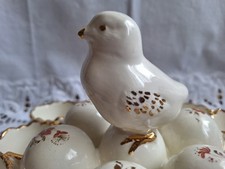 12 Egg Holder Chick with Flowers On Eggs Ceramic Gold Trim Easter Spring Vintage