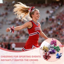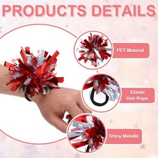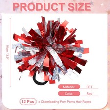 12 Pcs 4″ Pom Poms Cheerleading, Cheering Elastic Hair Ties Red