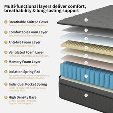 12″14″ Hybrid Mattress Gel Memory Foam Spring Twin Full Queen King Size In A Box