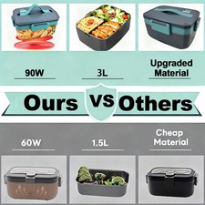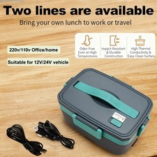 12V/24V Electric Heating Lunch Box Portable Bento Travel Food Heater Car Plug US