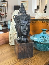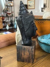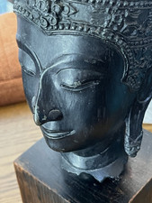 13.5″ ANTIQUE BRONZE THAI BUDDHA HEAD wood stand