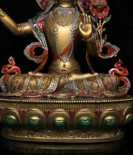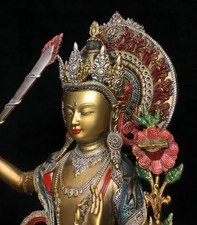 Be the first to review “13.5″ Old Tibet Pure Bronze Gilt Painting Wenshu Manjushri Goddess Buddha Statue” Cancel reply
