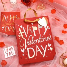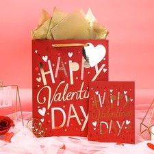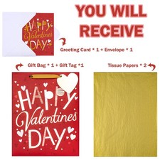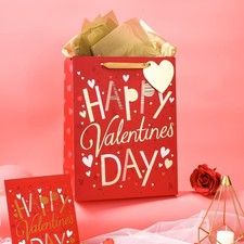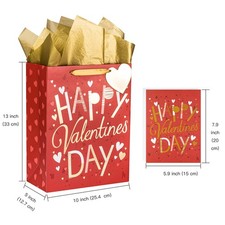 13″ Large Valentine’s Day Gift Bag with Card and Tissue Paper – Happy Valentine’