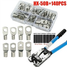 140/280Pcs Battery Cable Lugs Eyelets Copper Ring Terminal Crimp Wire Connectors