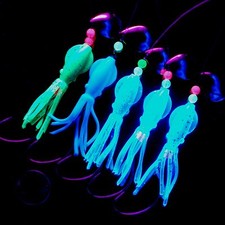 15 FLUKE FLOUNDER RIGS B2 SQUIDS STANDARD, GLOW, UV FISHING (FREE LURES)