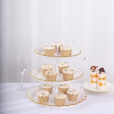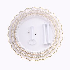 15″ Metallic White Gold 3 Tier Plastic Cupcake Stand Round Tower Lace Cut Trim