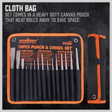 16pc Industrial Mechanics Punch & Chisel Set Pin Tapered Center Cold Roll Pouch