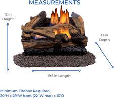 18″ Ventless Natural Gas Log Set – Split Red Oak, 30,000 BTU, Remote Control