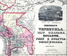 1860 Johnson Map South America Venezuela Peru Bolivia Ecuador Chile Colombia