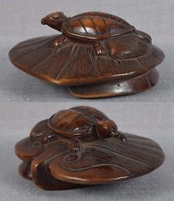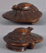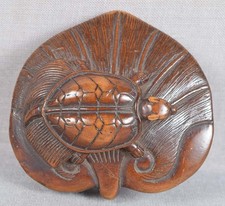 18c netsuke MINOGAME TURTLE on water lily