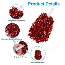 18Pcs Cheerleading Pom Poms with Baton Handle for Game Sports, Red