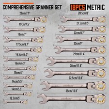 18Pcs Flexible Ratchet Wrench Spanner Set Metric 6-30mm 72-Tooth Crv Steel Pouch
