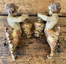 18th C Italian Carved Cherubs Putti Altar Brackets Sconces Pair 8” H