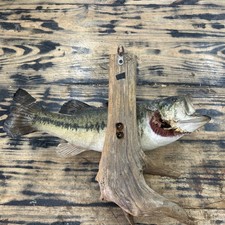 19” Fish Taxidermy Wall Driftwood Mount Big Mouth Bass Fishing Damaged