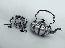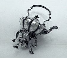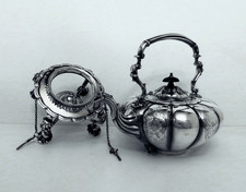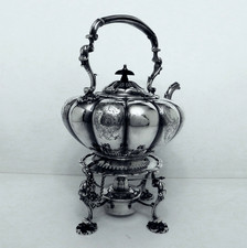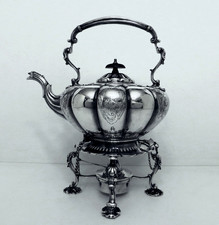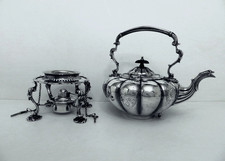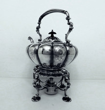 1930 A.E. POSTON & CO.LTD LONSDALE SHEFFIELD HAND CHASED MELON KETTLE W /STAND