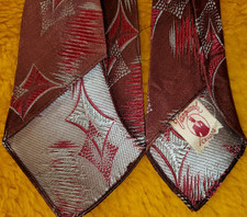 1930s 1940s VINTAGE ~ MENS TIE ~ BROWN RED SILVER ~ SHOCKWAVES & STARBURST ~ 48″