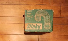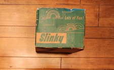 1940’s Vintage Very Early James Original Slinky Toy Green Box Blue Paoli PA