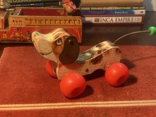 1950’s-60’s Fisher Price Toys Wood Pull Along Lot Winky Blinky Little Snoopy 3x
