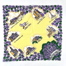 1950s Souvenir Chicago Womens Handkerchief Vintage Floral Cottagecore