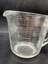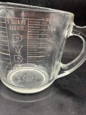 1980s PYREX 4 Cup 32 Oz. 2 Quart Glass Measuring Cup Mixing Bowl Red Letter USA