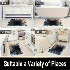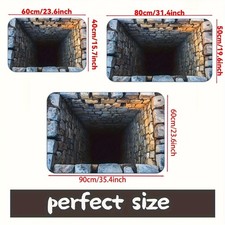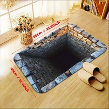 1pc Realistic 3D Cave-In Stone Hole Illusion Doormat Non-Slip Welcome Mat √