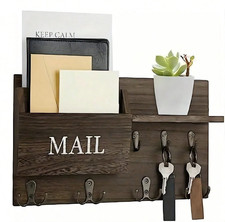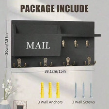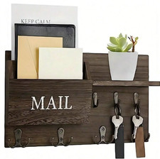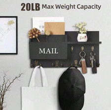 1pc Wall Mail & Key Organizer – Double Hooks w/ Shelf for Entryway – NEW