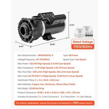 Be the first to review “2 HP SPA Pump 2-Speed Hot Tub Circulation Pump with 2-Inch Port 48 Frame 115V” Cancel reply