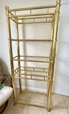2 MCM Vtg Brass Bookcase Etagere W/glass Shelves & Side Table Milo Baughman 73”