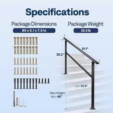 Be the first to review “2-Pack 6 Step Hand Rails for Outdoor Steps Wrought Iron Railing for Porch Deck” Cancel reply