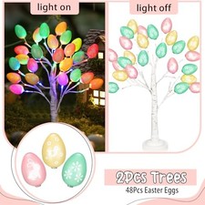2 Pcs 24 Inch Easter Egg Lighted Birch Tree Decorations Battery or USB