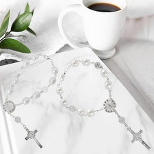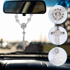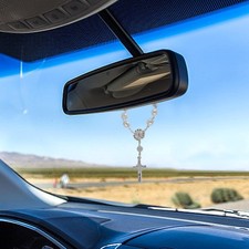 2 PCS Car Rosary for Rearview Mirror, Personalized Blessing Rear View pink