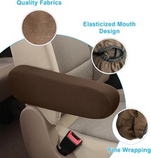 2 PCS Front Seat Armrest Covers, Elastic Fabric Seat Armrest Protectors, Coffee