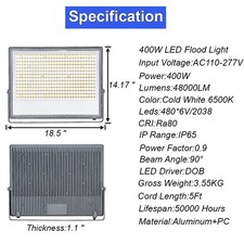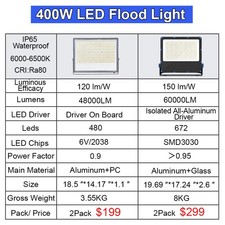 2 PCS LED Flood Light Spotlight 400W Led Garden Yard Billboard Lights 48000 Lms